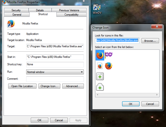 Is that in your taskbar? Unpin it, then go to the FF program in the Start Menu and pin it again to your taskbar.