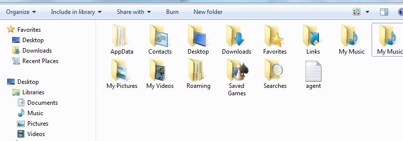 For the record, you don't need to call the folders My Documents or My Music etc. You can give them any name you like. If you rename the default "special" folders, sometimes you'll still see "My Documents" instead of the new name when saving files, but it doesn't matter (Windows saves a file that keeps the folder a "My Documents" folder while you call it something else. Mine's called "Darren's Stuff" and the ini file inside looks like this. It's probably more involved for Win7.