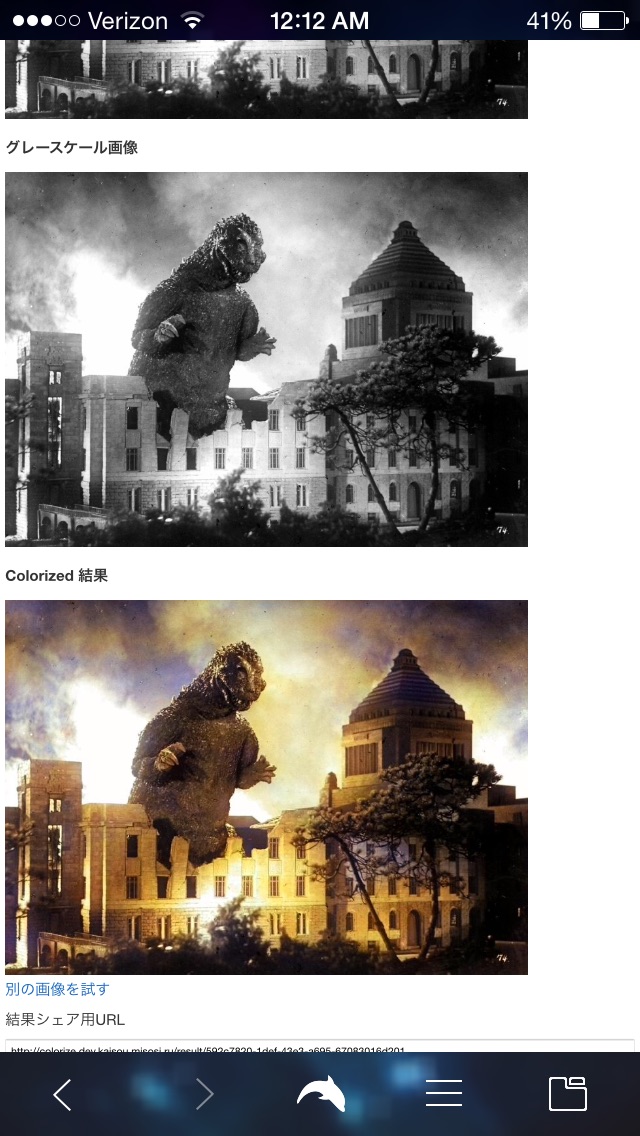 11. This is pretty fun to play around with. I tried a b/w shot and not greyscale from the original Godzilla 1954. It gave me this kind of neat result