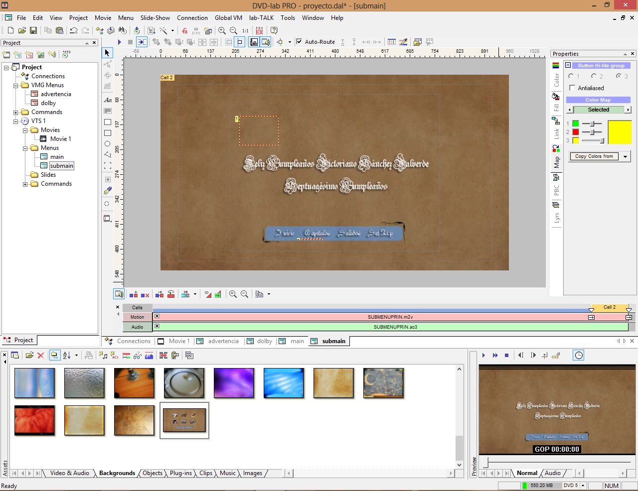 Hi, I saw some DVD's that in cells put a short video and then goes into a static cell without audio, or animation, only one image or several sub-menus as VTS but several cells. The good news is that no problem can create a cell that is the "Static" submenu, putting link, buttons, colors, etc. Now the problem is that when I add a video to another cell, the video is all encompassing and that its duration is less than 10 seconds.