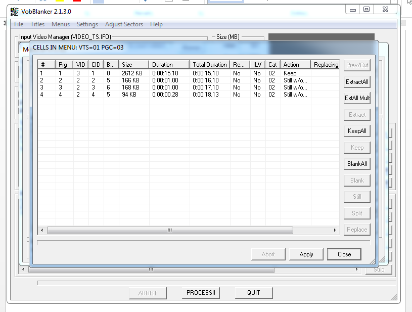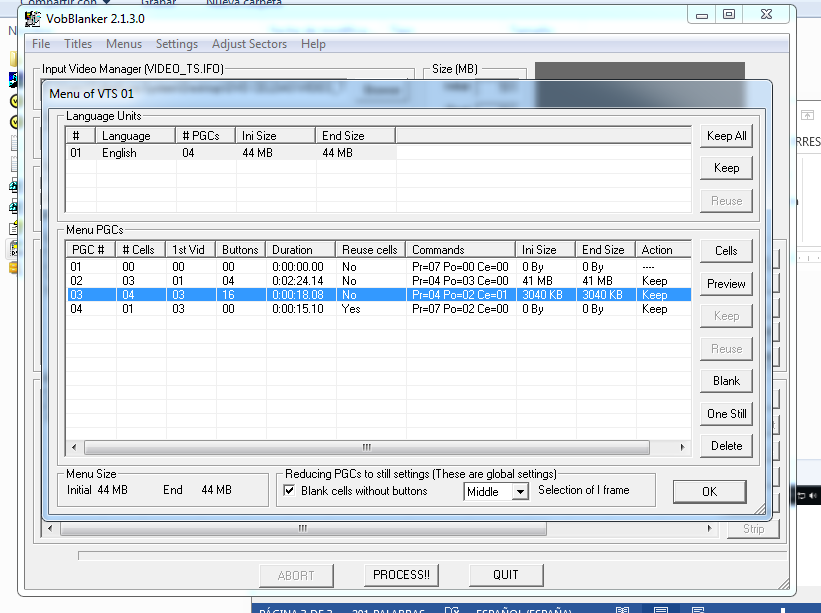 Hello, I forgot to tell Rather it is the first time I use the VobBlanker. The PgcEdit and DVDLABPRO if I know, but ... I'm just learning VobBlanker.