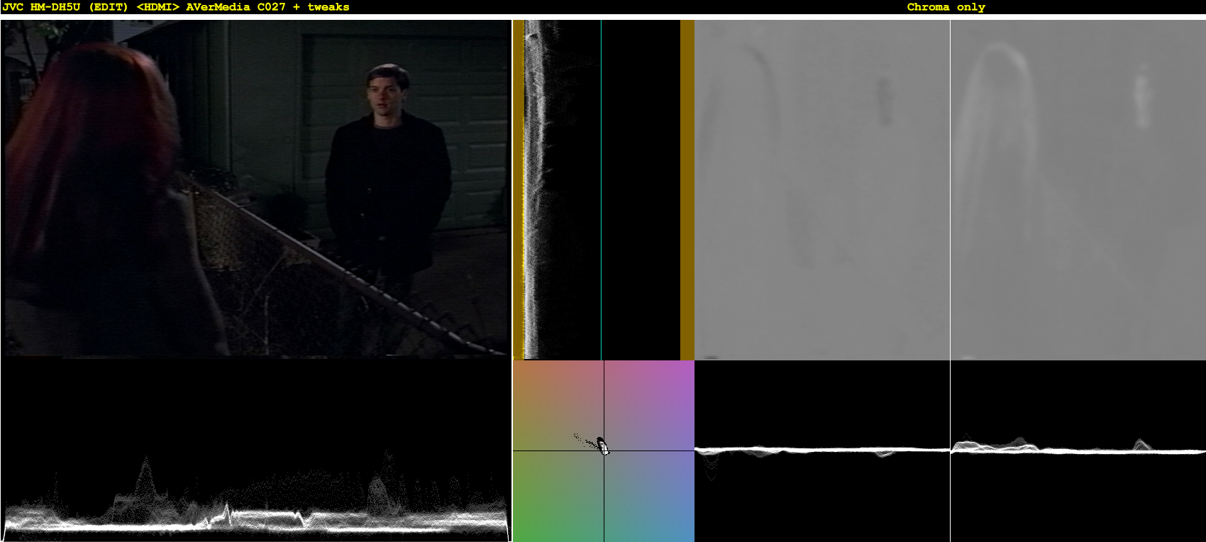 I read about the AG-1980 exhibiting the familiar "temporal artifact" as found in other vcr brand/models, and also in various types of software DNR filters. I believe the complexity of the artifact, the amount of it, is dependent on the content (motion speed in certain scene change and/or scene motion). For instance, in a sample clip from that image you see (I was too tired to upload last night) it showed very minute levels of that artifact. I will have to post that clip today, later. Perhaps untouched also. Color correcting vhs is difficult because different movies were mastered with poor color levels to begin with. I was actually considering the idea of mapping the sample clip to my dvd, but there is no filter (virtualdub or avisynth) that can do that. At least not yet. The idea (at least in my head) is to duplicate the dvd's "color level" (brightness, gain, gama, etc) and apply it to the vhs version but not specifically touching the pixel. I don't think this idea was ever thought of here until today, I am sharing that idea with you now. But again, I feel that vhs should be left alone, to keep the aesthetics intact, including the wrong color level if necessary.Last edited by vhelp; 6th Oct 2016 at 12:53.