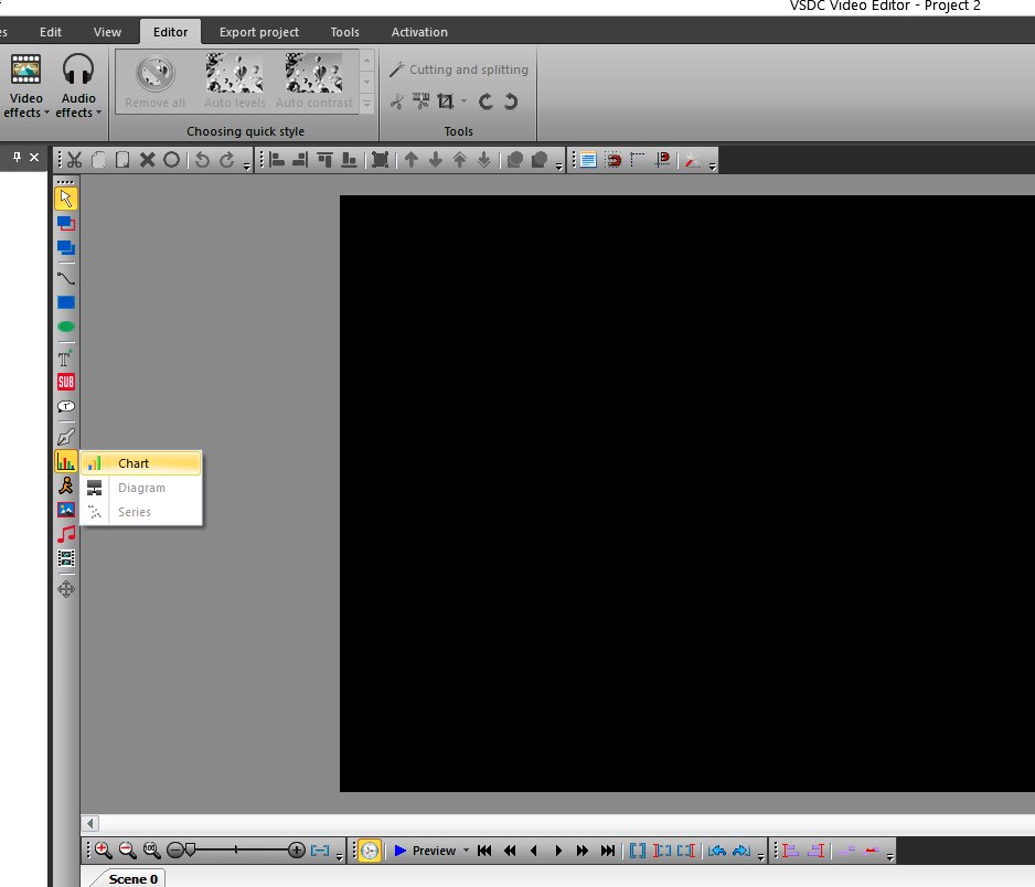 1. Open VSDC Free Video Editor, choose Blanc project and click a chart icon on the left menu.