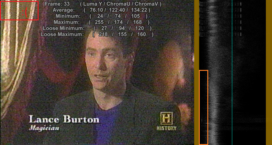 The black level is also way too high. Except for the bottom 3 lines, the lowest Y values are brickwalled at 24 instead of 16 or below. It looks like the Brightness control on the capture device was raised.