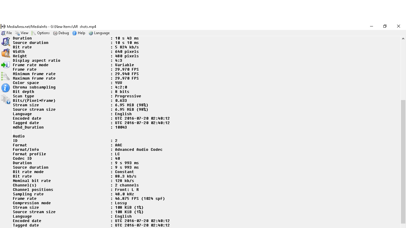 Ok, I got MediaInfo downloaded and running and got a screenshot of the information about a 10 second video I made from a longer one. It started out as an .avi video and I edited it using PowerDirector12 and saved the result as an MP4 file. The video now has no audio no matter what I play it back on. Here is the screenshot showing the MediaInfo information. Can you tell me from this why there is no audio?: