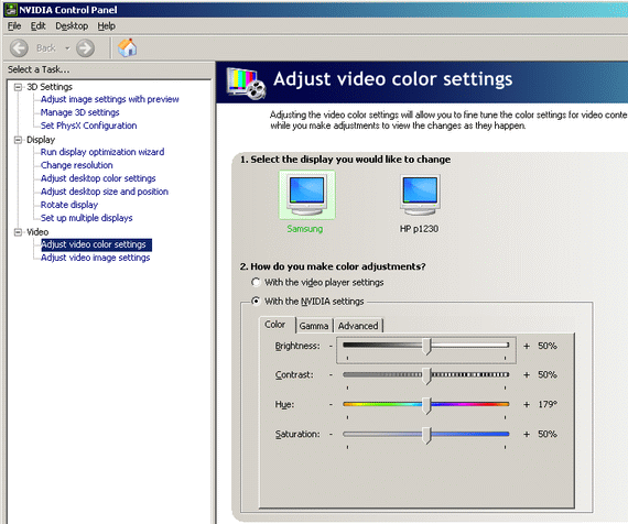 If you're using Asus drivers I'm not sure, but for Nvidia drivers there should be a Nvidia Control Panel shortcut in the Windows Control Panel, or whatever the old Control Panel is called these days (I'm still using XP). Maybe under display settings or something like that for Win7. It'll look something like the pic below. The video specific settings only effect video, not Windows in general, and only for DirectShow players such as MPC-HC, as far as I know. I don't think they'll have any effect on the video VLC displays. If you have Asus drivers installed there might be an Asus version of the control panel.