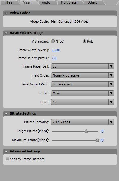 Thanks, I've got Premiere Pro Cs3 and there seems to be no options for gop keys etc.