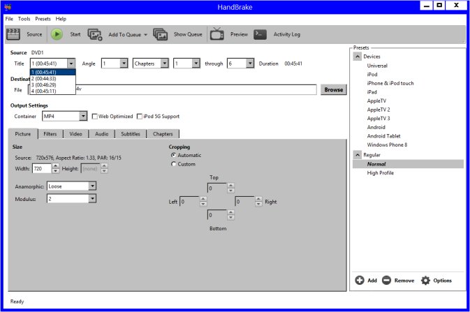 In case your DVD has more than one video /Title) on it your choose which to convert/compress.