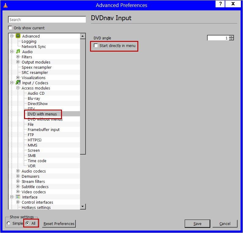 PS And normally you don't play individual VOB's. With VLC open VIDEO_TS.IFO or drop the folder VIDEO_ts on it. Also for VLC you might want to untick "Start directly in menu"
