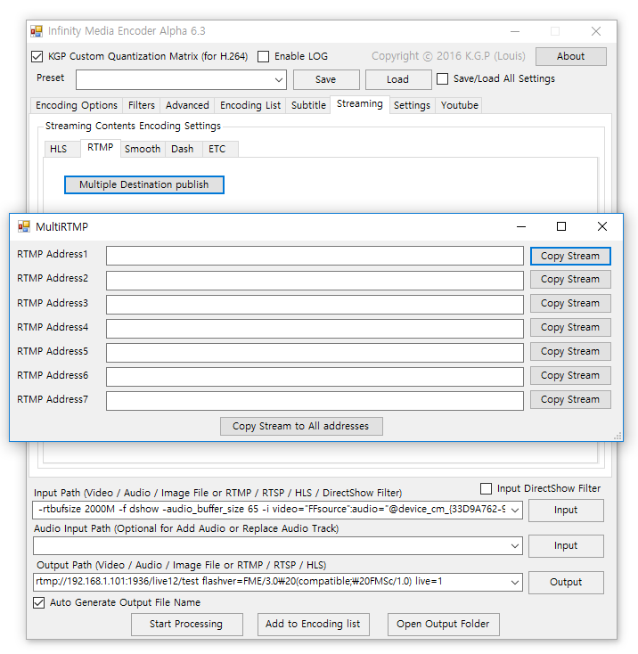 •RTMP Multi destination publish support with NGINX Server (will be support)
