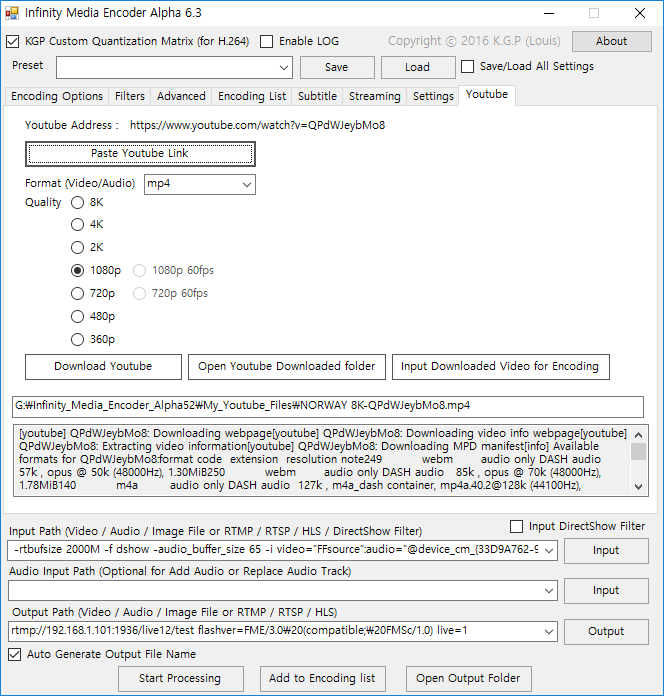 •Download Youtube Video / Youtube Live (360p ~ 8K Super UHD Resolution) (by youtube-dl)
