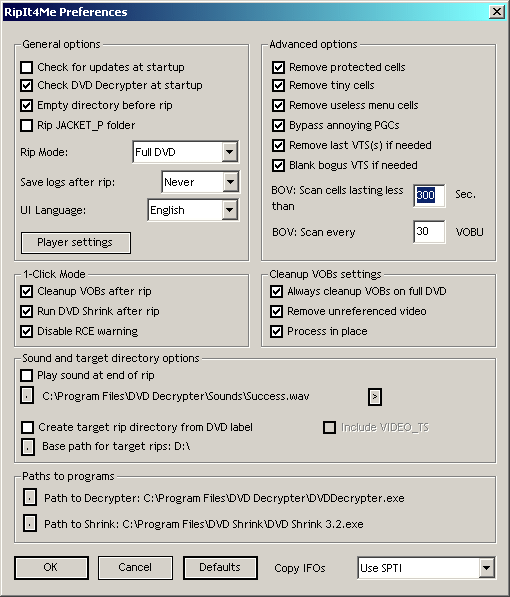 I installed Ripit4 me and DVD Decrypter and then ran Ripit4 me with the preferences set as you suggested.