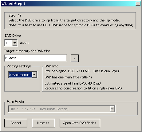 PS If you do rip with DVDShrink make sure it's compression is disabled or the output file size in it's preferences is set to something huge so it won't try to "shrink" as it rips. By default it tries to shrink everything to fit on a single layer blank disc. Unless of course that's what you want it to do... -
