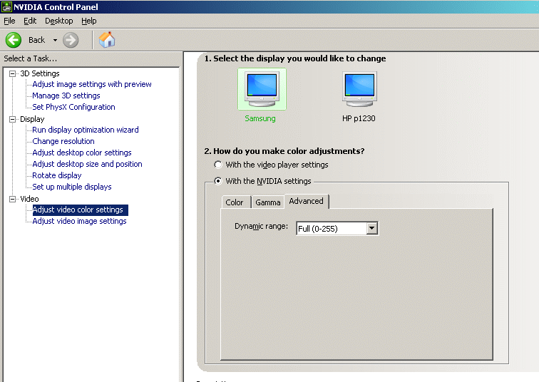 The video section is where I can adjust levels but it only effects video. The levels used by Windows itself are full range and for the TV the VGA input is fixed at full range..... yet for NVidia the video levels have always defaulted to limited range even for VGA , and that's never made sense to me.