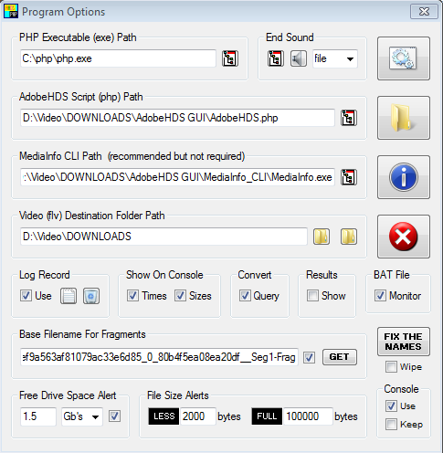 (v1.5) Added a Download Results dialog to show video size & duration, plus time taken. A GET button was added for Basename, plus options and buttons to fix segment names or delete segment files. Check option added for free drive space. Some improved reporting. Size and Duration added to START JOIN process, along with Join Results dialog. Existing fragment files are detected before starting the download process, with options to delete all fragments or ignore them (resuming etc) or abort downloading.