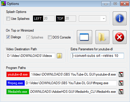 NOTE - If you know about setting %PATH%, then you may be able to specify the locations of ffmpeg.exe and youtube-dl.exe that way.