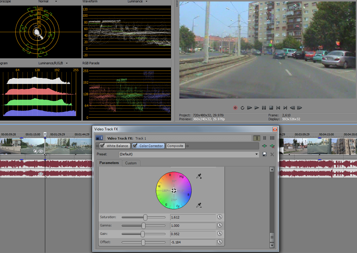 Yes, that's all understood and you have an appreciable problem, but so far you've underestimated the task and haven't yet learned to "see" video problems. Learning to recognize problems is as difficult as finding solutions. You haven't mentioned (or maybe haven't noticed) what the camera's autogain and autocolor circuits are doing in these videos. The color balance changes every time a new, dominant object enters the frame or every time the angle of the sun changes. Black levels pump up and down when the camera moves into a view of people inside the car or when dark or bright objects pass by. These changes affect black and bright levels as well as perceived saturation.