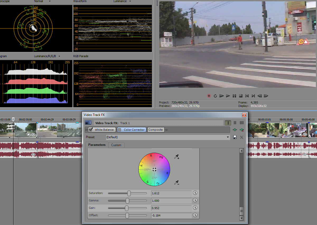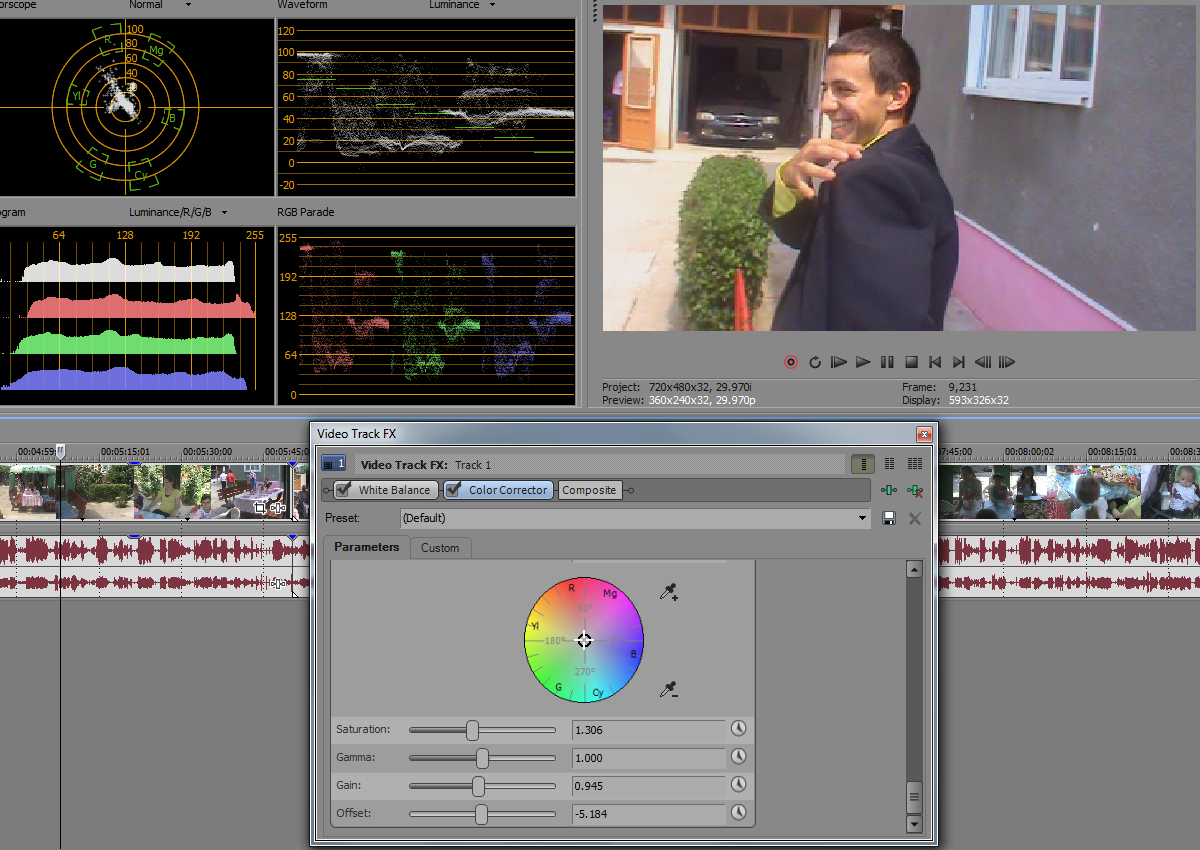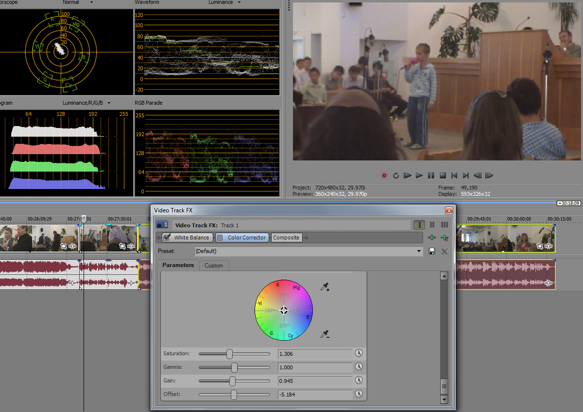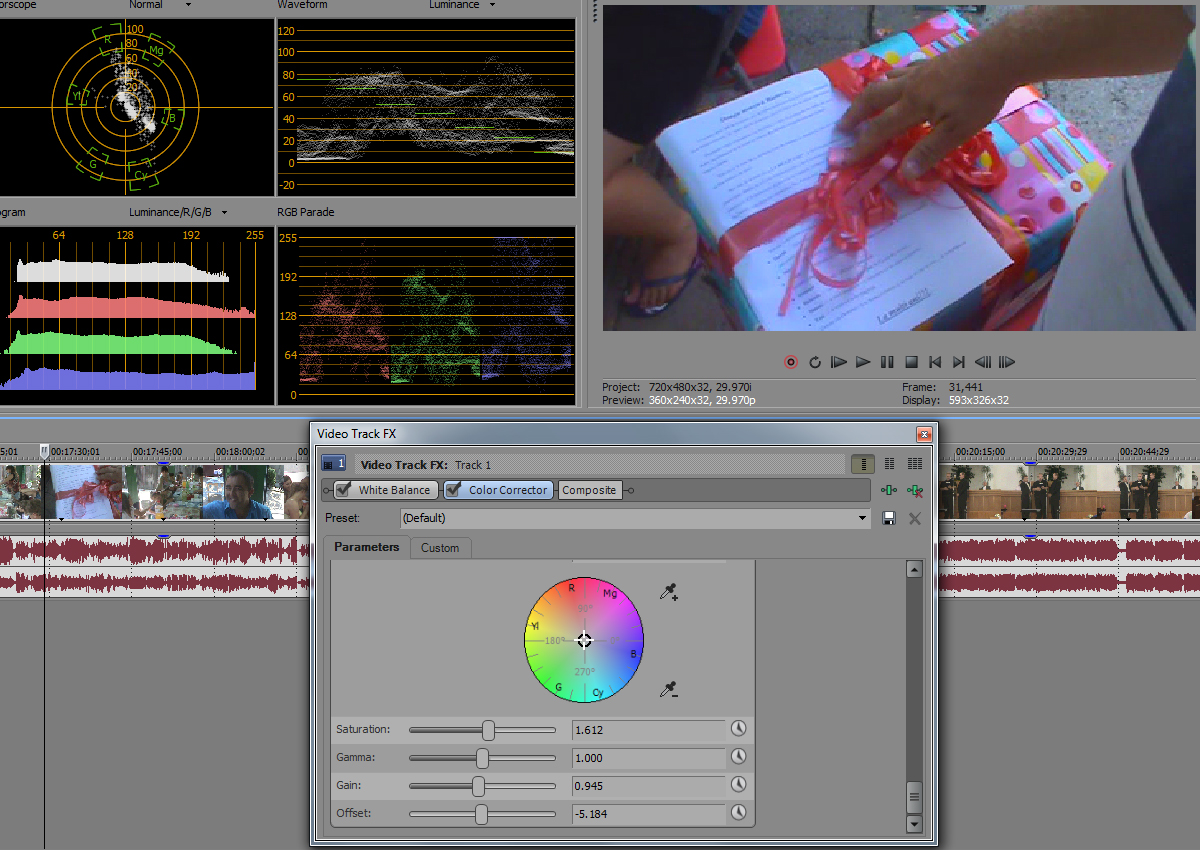 Hm...is this always the case with restoring home videos and tapes or just for my camcorder footage selection? Because a lot of the tutorials and YT videos I came across a while back, teaching you how to fix stuff up in tools like avisynth, almost always had some sort of Tweak code in it as well that included saturating the video to give it "more life."I recommend not adjusting saturation unless you are trying to achieve a special effect. One exception to this is using the Vegas "Secondary Color Corrector." It can let you adjust a specific color range, and only the part of that range which is too saturated. I've seldom seen under-saturated colors. The over-saturated problem is quite common when capturing NTSC video because of the way red is stored. It often tends to bloom, and one correction that can help is to select just that color and then slightly reduce the saturation.