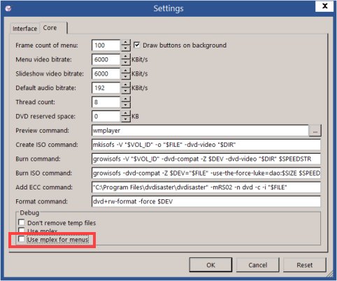 You could try "Settings -> Core -> Untick Use mplex for menus".