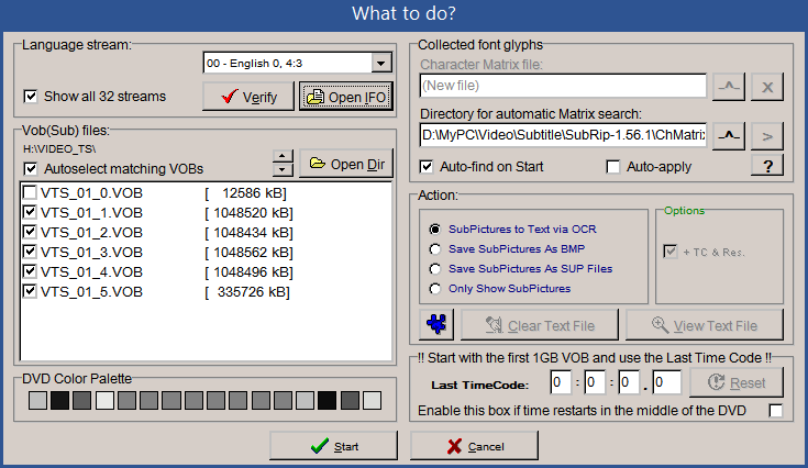 Re the DVD color palette, yes, it is all white before I attach a VOB file, and then it turns all black.