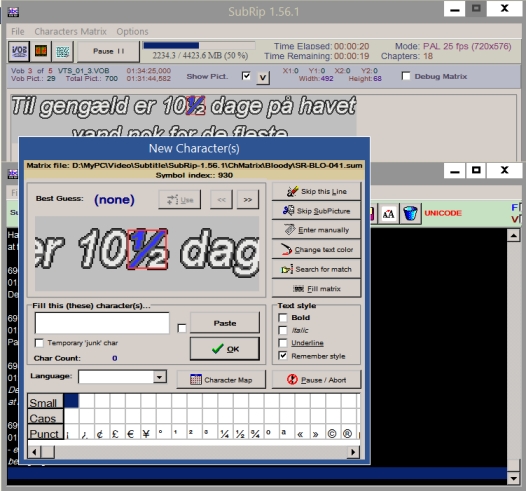 When SubRip asks me to identify an unrecognized character, I see the bitmap character in blue with a red box around it, but no other contextual characters. It is therefore hard for me to decide whether a character is say an I or an l, p or P, O or 0, etc.