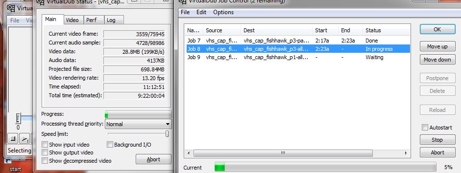 Im simply not used to seeing these threadlocks ever on my system from any version of vdub before, and not seeing things taking this long. However, im using new codecs, i used to use an older ffdshow_rev3631_20101115_clsid, now im using straight new xVid Video Codec, and x264vfw - H264/MPEG-4 AVC codecs only.