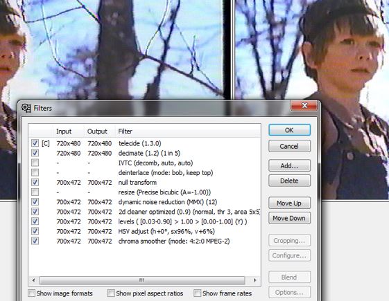 Here is my filter chain. I Could use some help on that if thats the problem too. Im still a novice at encoding, after 15 years of using virtualdub, lol. (actually leaving the chroma smoother was a mistake)