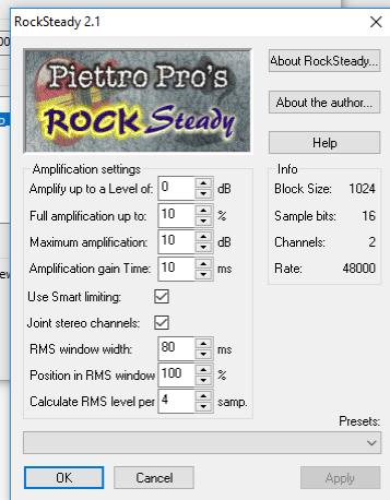 I had a play with the audio from Creed 2, and you're not doing anything wrong there as far as compression goes. The background sound in the Creed 2 sample where I heard the speech going up and down is loud and has a fair amount of low frequency content. That seems to effect RockSteady more than the DAN. I honestly don't notice that sort of thing much using my normal RockSteady settings, but the DAN seemed to do a better job on that one (-f 150 in the command line). I tried a lot of different RockSteady settings but still thought the DAN was better. I tried VLevel and it wasn't as good either.