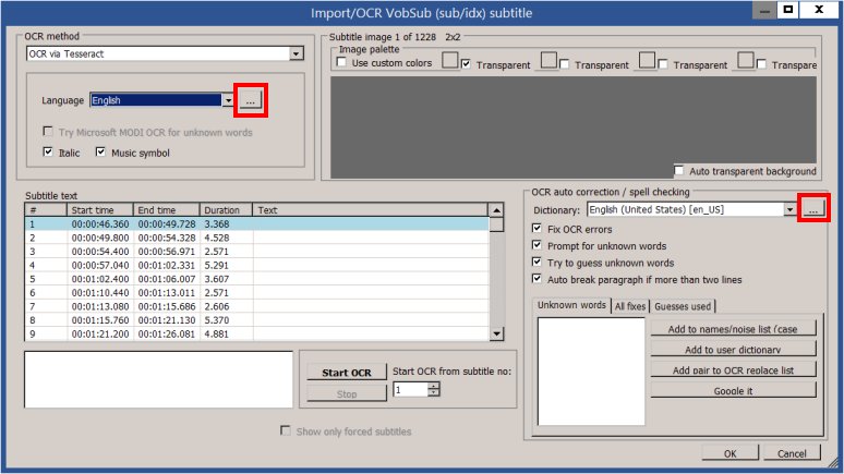 In the past I installed a German and Dutch dictionary and they work fine. But that was a few years ago. Now I am not so sure in which folder I have to put the traineddata files. In the rootmap of Subtitle Edit there is a Tesseract folder with a tessdata map. But in the Subtitle Edit folder there is a Tesseract map too, with a tessdata map. I put the both traineddata files in both tessdata maps. But it doesn't work. All the other combinations doesn't work ether. Anybody an idee what can help? Lots of thanks.