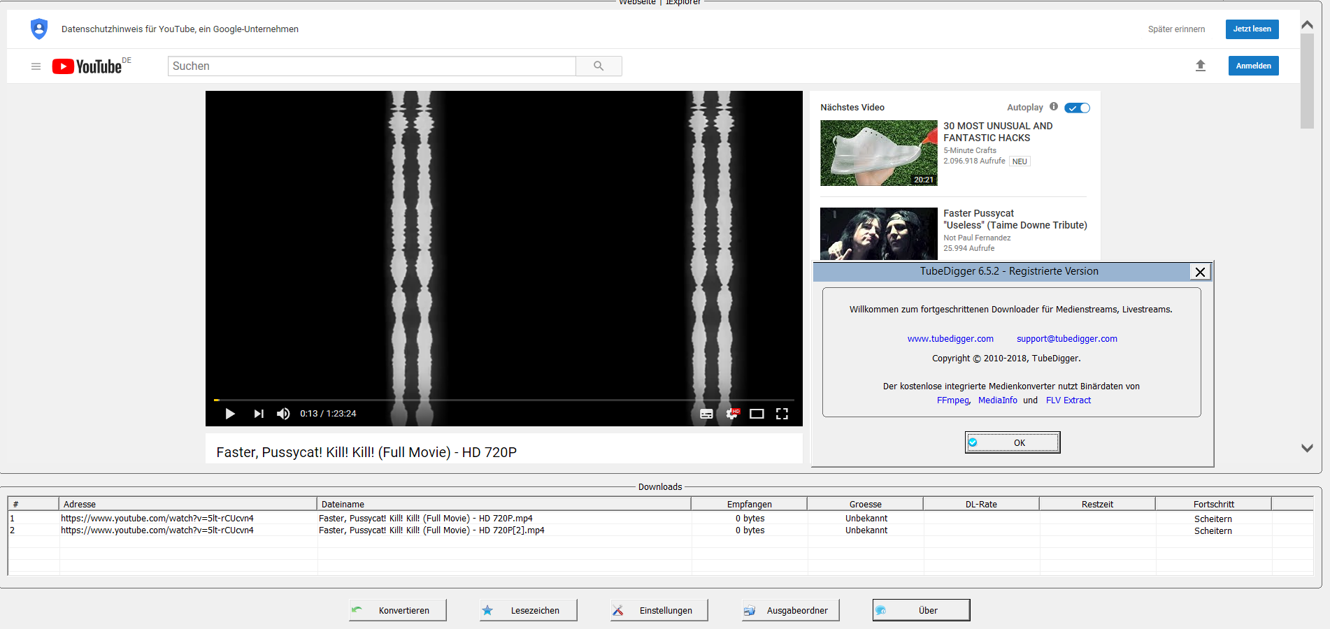 I am not able to download this video with TVDownloader or Tubedigger.