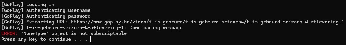 Since early this month downloading from GoPlay gives some issues. While providing correct username and password I nevertheless get now the following feedback/error message:
