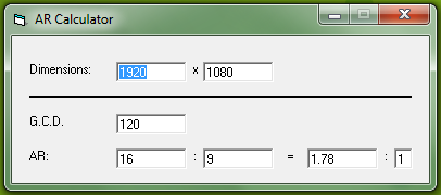 I was reminded of this thread while I was trying to work out how to do something else, as I discovered Avisynth has the ability to reduce fractions, so I created a little function to make it easier, and another one to convert decimal numbers to fractions. The result is displayed as a subtitle in the centre of the video.