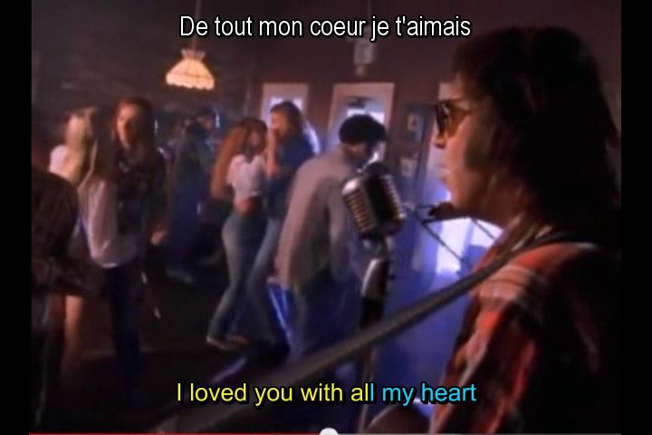 You can see the karaoke line at the bottom, and my French translation on the top.