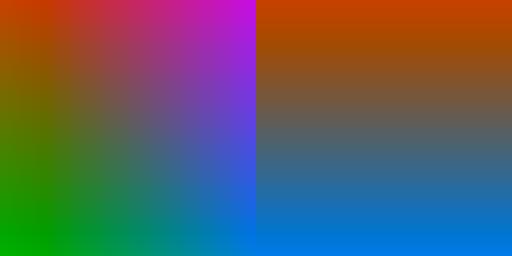 On the left is the full range of colors, on the right the result of the transform. You can see that greens and purples have been lost, replaced with browns and blues. -
