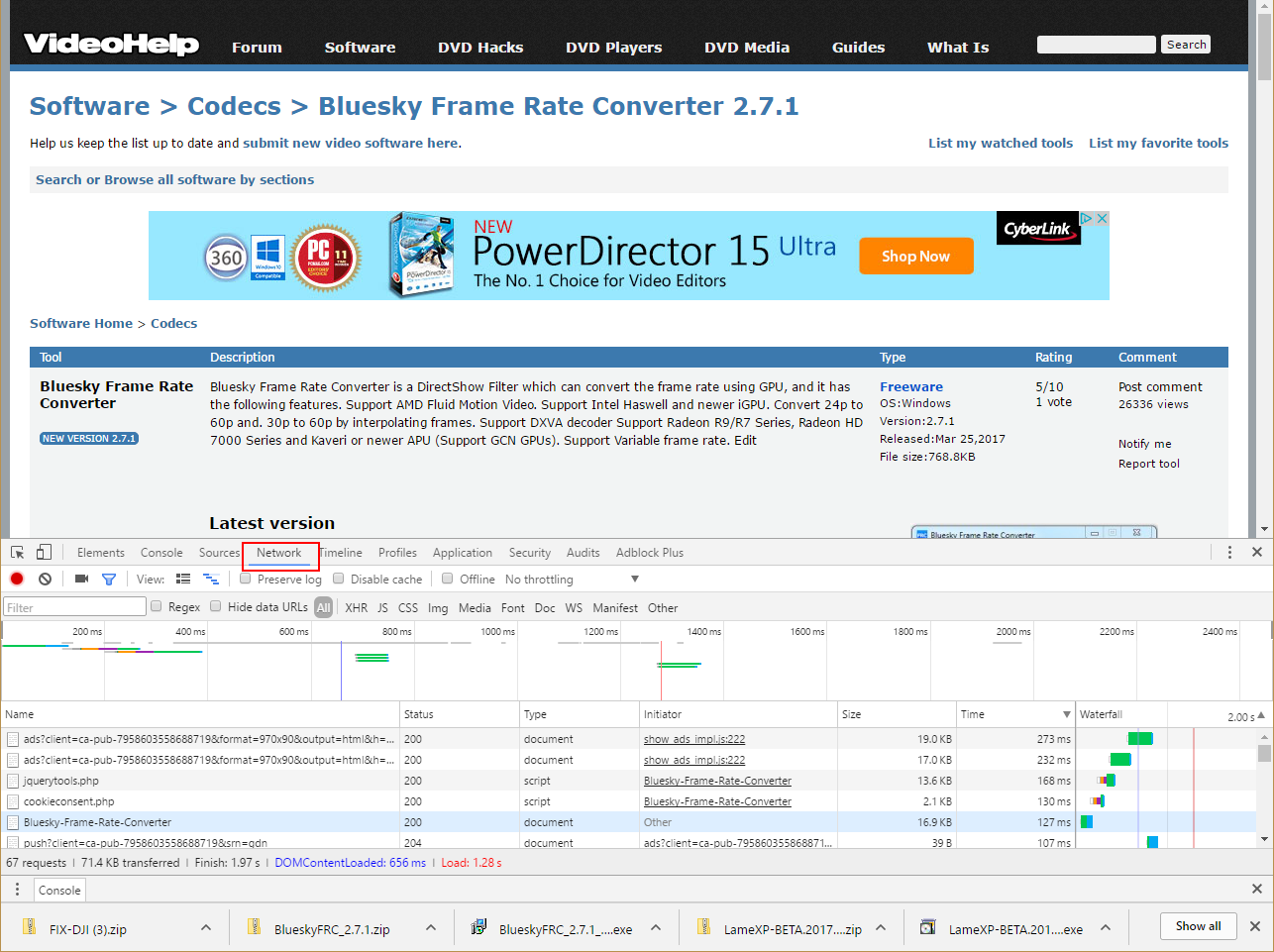 It seems to spend most of its time just 'Waiting for www.videohelp.com'.