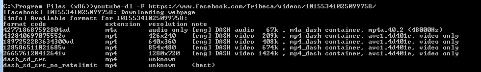 youtube-dl -F https://www.facebook.com/Tribeca/videos/10155341025099758/
