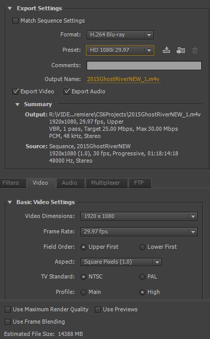 Thanks for the suggestions _Al_. I still must not be doing something correct. The individual video clips on my Premiere Pro timeline are a mix of 30 fps and 60 fps mostly at 1920x1080 resolution. I took you advice and rather than trying to burn the blu ray from the MP4, I made a new export from the original PP sequence using the "H.264 Blu-ray" format with the "HD 1080i 29.97" preset selected. I then burned this export to a Blu-ray and am still getting the same jagged edges. I am surprised that I am getting this kind of issue using PP's default Blu-ray export. I must still have something wrong. It the problem that I am using Adobe Elements to burn it? I would be happy to try a different burning software but I don't have anything else. Ideally I would like to be able to make a simple menu with chapter markers but even just having the video burned without titles would be OK if the quality was high. I attached a photo of my PP settings I used for the export.