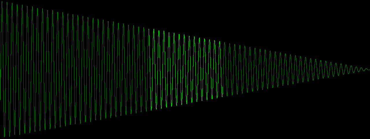 As you can see it fades linearly from full amplitude at the left, to zero amplitude at the right (before the fade it was full amplitude across the entire image). But after four consecutive FadeOut0(5) you get a much steeper drop at the start: