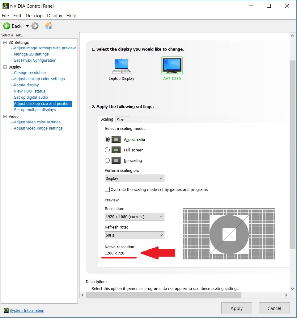 Note 2: For some reason the native resolution of the Avermedia Game Capture HD II Card is 1280x720 as you can see in the attached screenshot, and im not able to change it