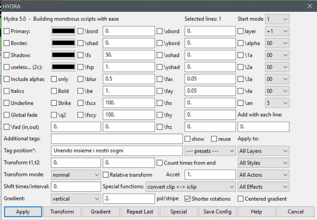 Hi, I just added HYDRA script to Aegisub, and I want to create a vertical gradient, but I really can't figure out how to do it.