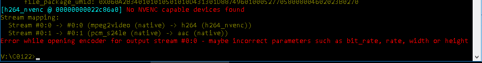 [h264_nvenc @ 0000000002368b80] No NVENC capable devices found
