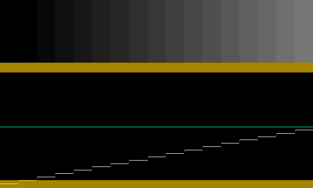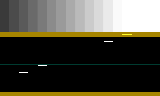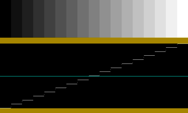 As you can see the greyscale bars increase in brightness in equal increments from left to right, from 0 to 255.