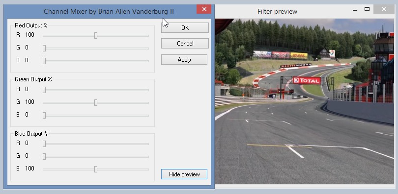 Is there a VirtualDub Filter that swaps the red and blue color channels in a video so that it looks infrared?