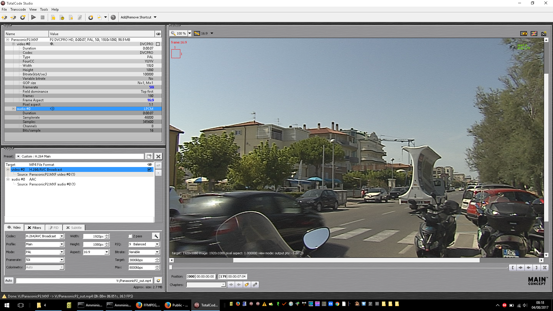 FFMPEG|FFMBC pipe to encode from .avi to .mxf files