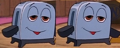 I have "Brave Little Toaster" on one of my old laserdiscs, and don't remember the flicker you see in sample2. I'm not sure where they came from and I'm sure you can get a better source. Sample 1 looks fine to me and I don't know why you'd bother trying to do anything. Just watch the movie and enjoy it!