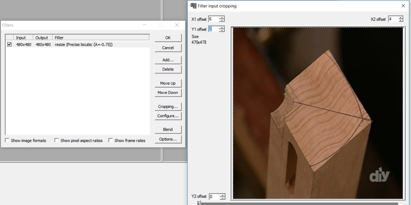 I'm actually using VirtualDub I got here with the x264vfw codec, but VirtualDub_FilterMod would probably work just the same. My understanding of the following "resize/crop" method is that no real destructive resizing is occuring when Framing options are equal to source Size (see below)