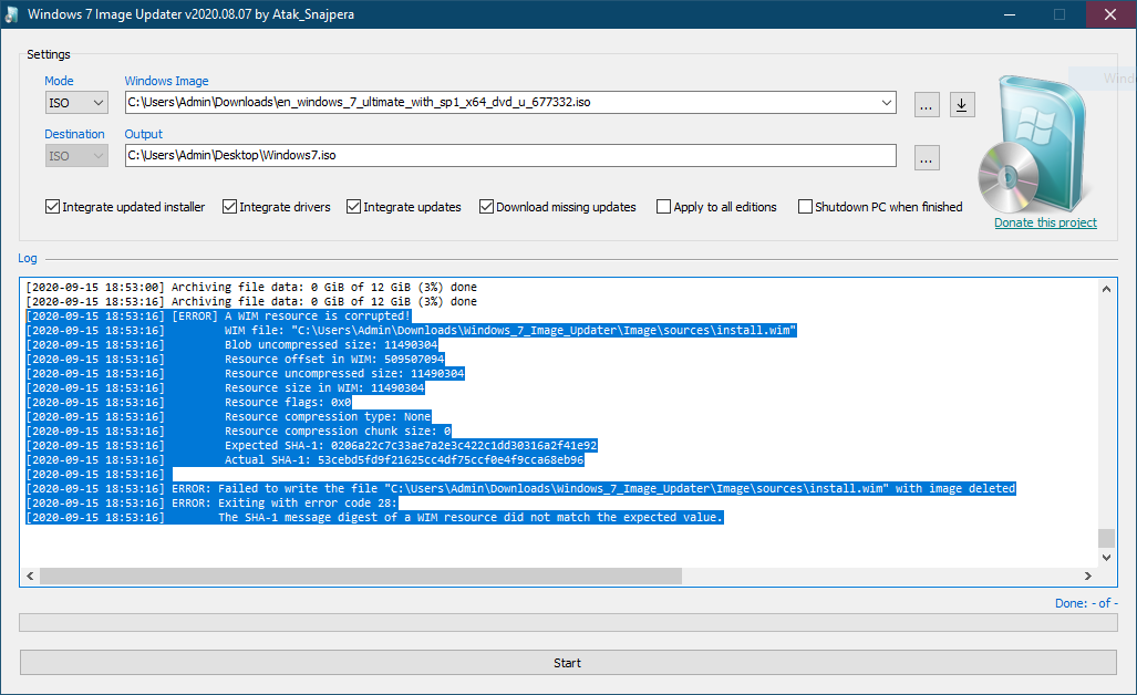I successfully build new instalation Win7 ISO from same source with your latest tool (14th Aug 2020).