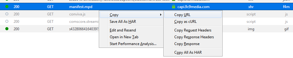 I was using Internet Explorer. In Firefox try looking for a manifest.mpd f4m link instead. Copy the URL: