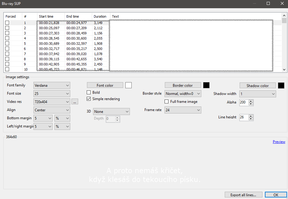 Thank you videobruger, that is exactly what i wanted to do. This is my standard tool for subtitles, but I've never found out this option.