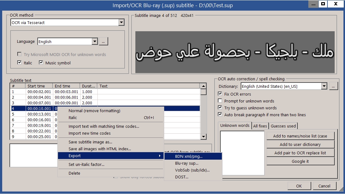 Not sure about step in right direction. Subtitle edit. And export as BDN xml/png